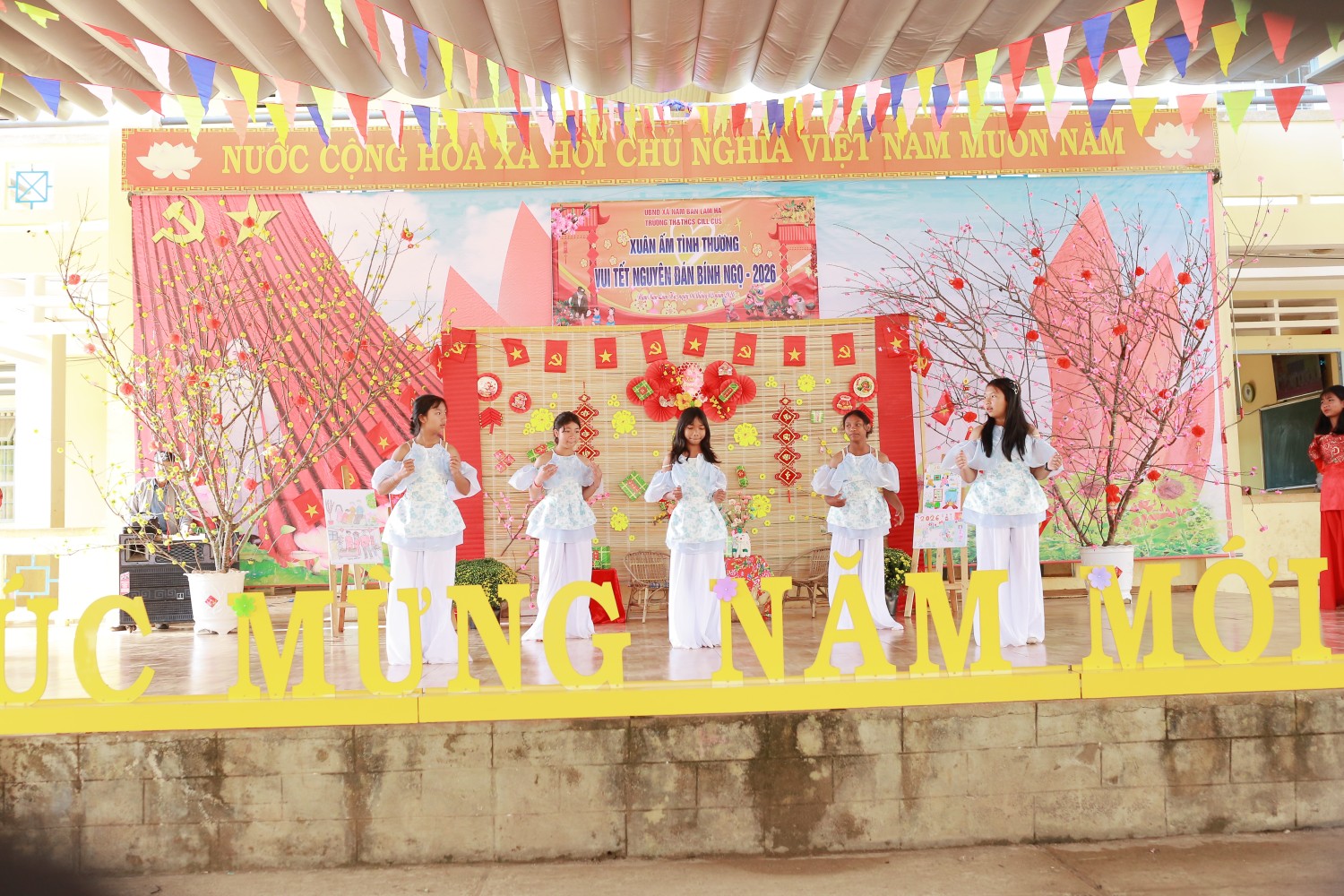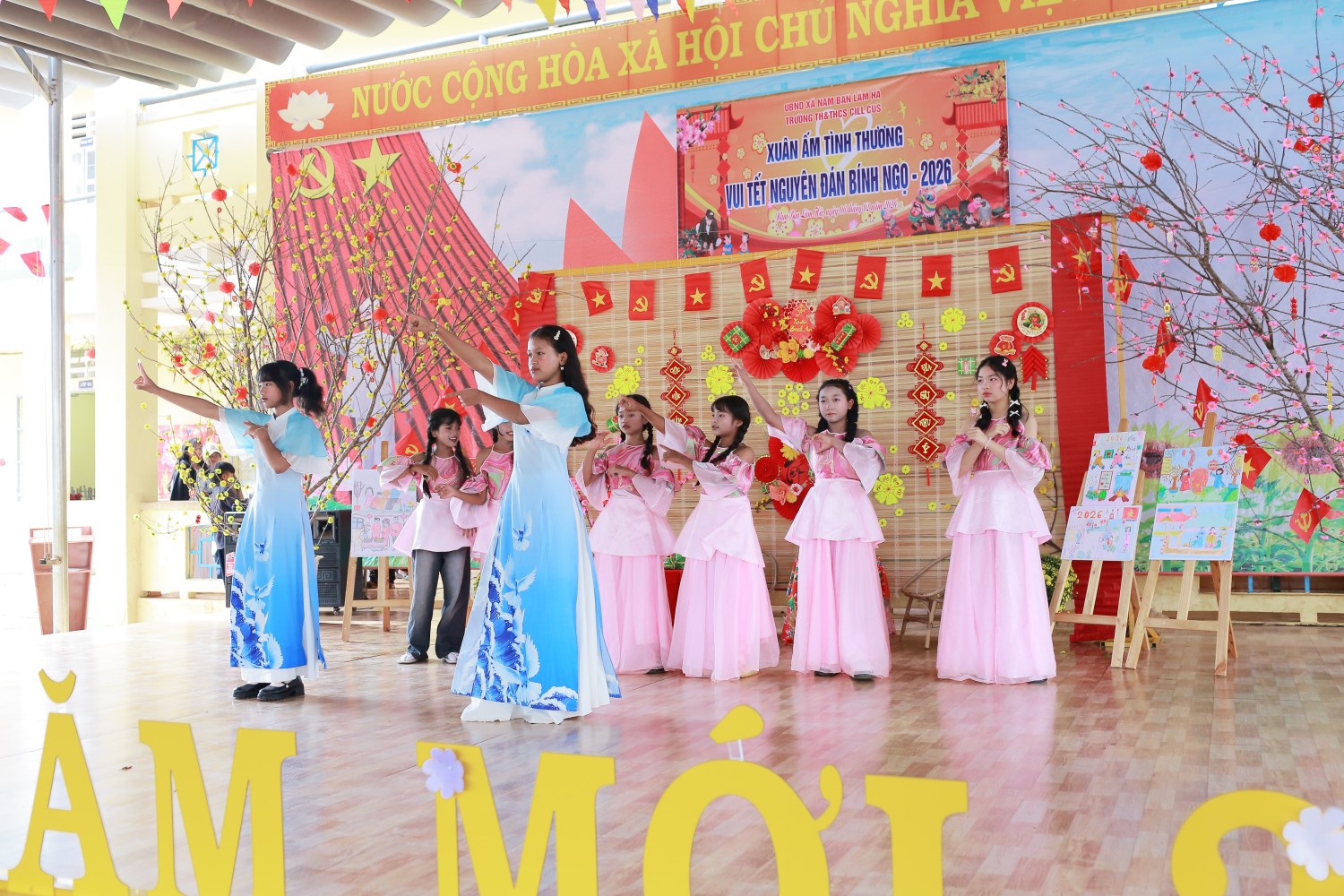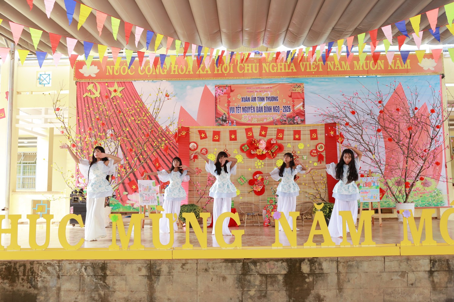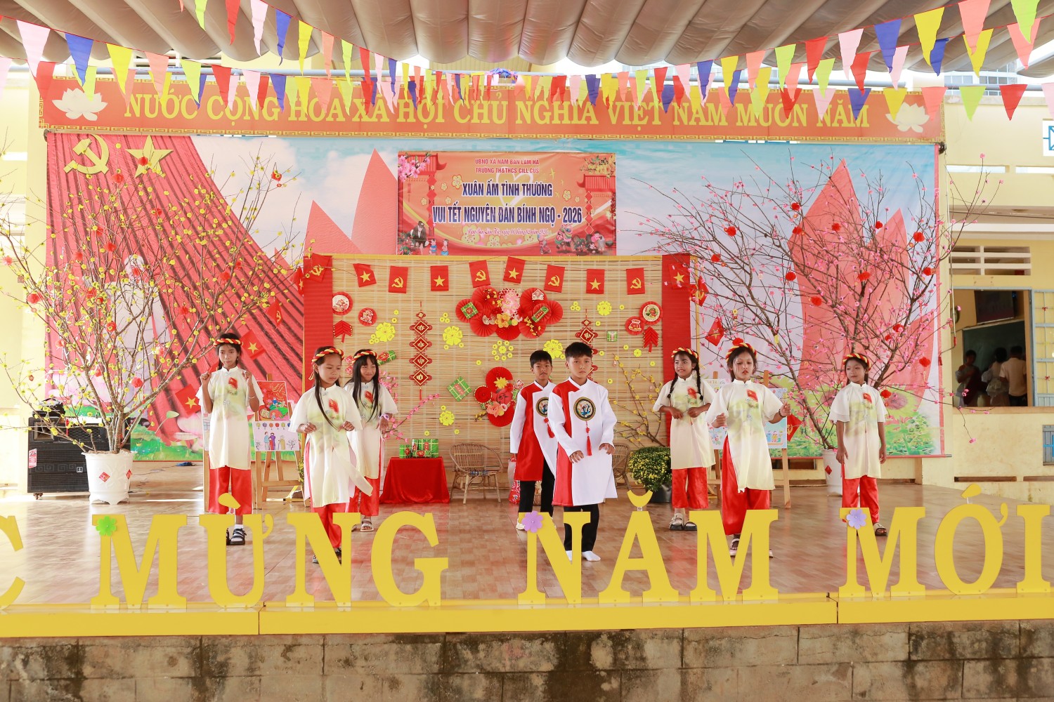 Văn nghệ chào xuân: Những tiết mục văn nghệ đến từ các em học sinh từ khối lớp 5 đến khối lớp 9 mang đến sự tươi vui, phấn khởi.