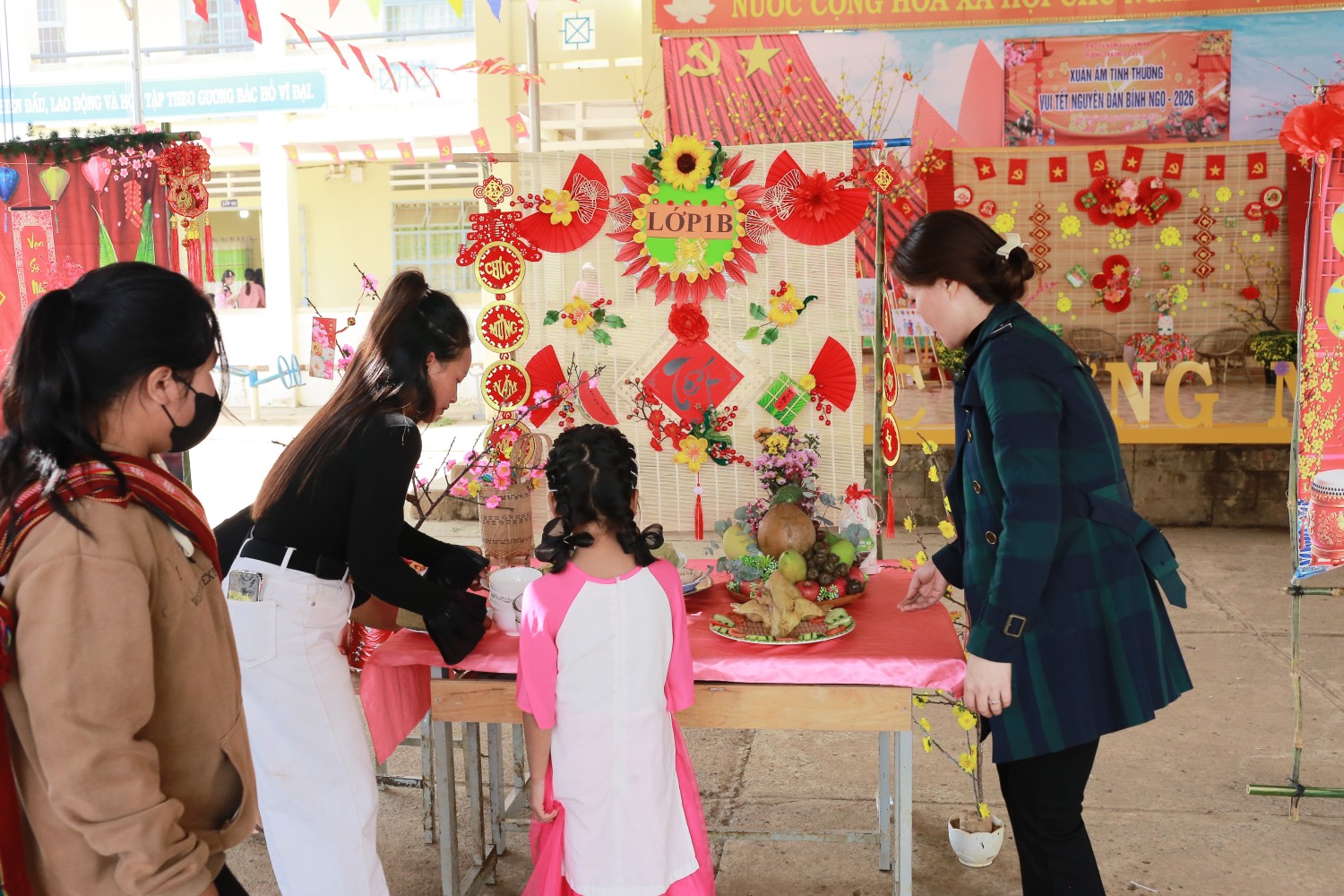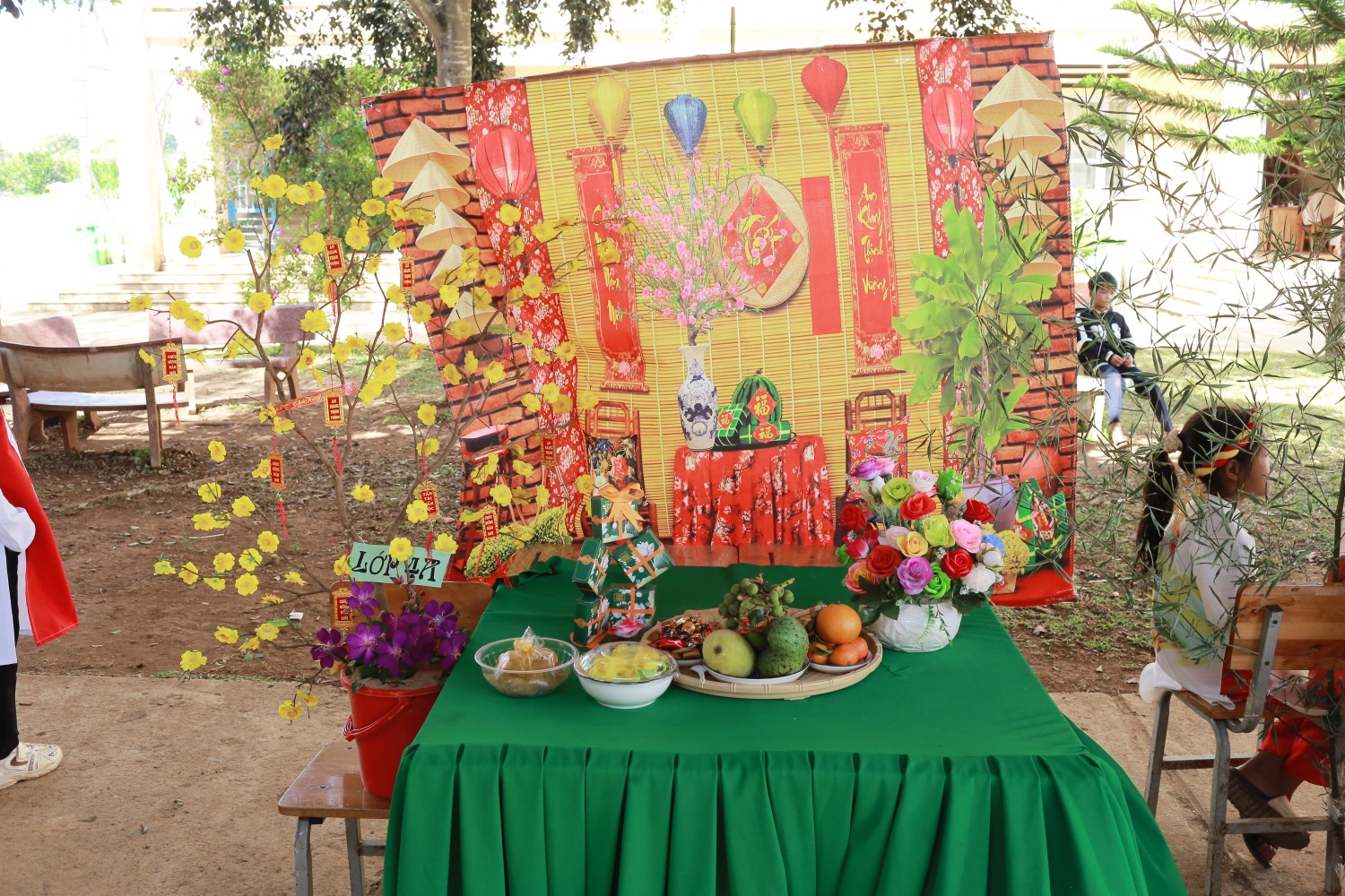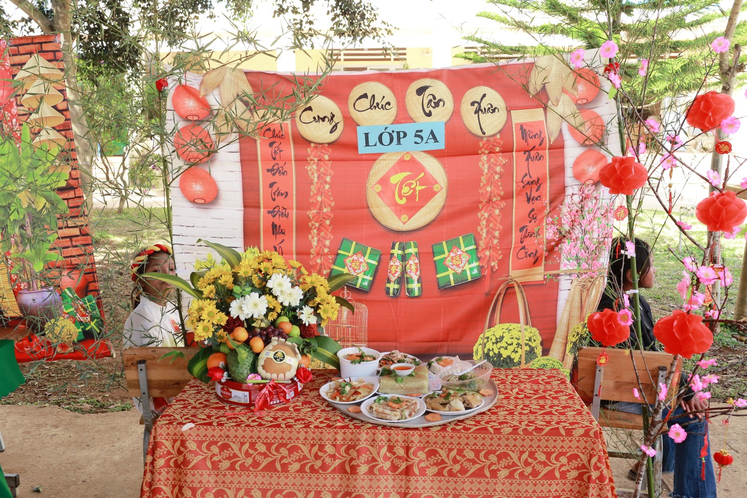 Trưng bày và trang trí mâm cỗ ngày Tết: Các em học sinh được trải nghiệm tự tay làm, trưng bày và trang trí, học hỏi về nét đẹp văn hóa ngày Tết cổ truyền của dân tộc.