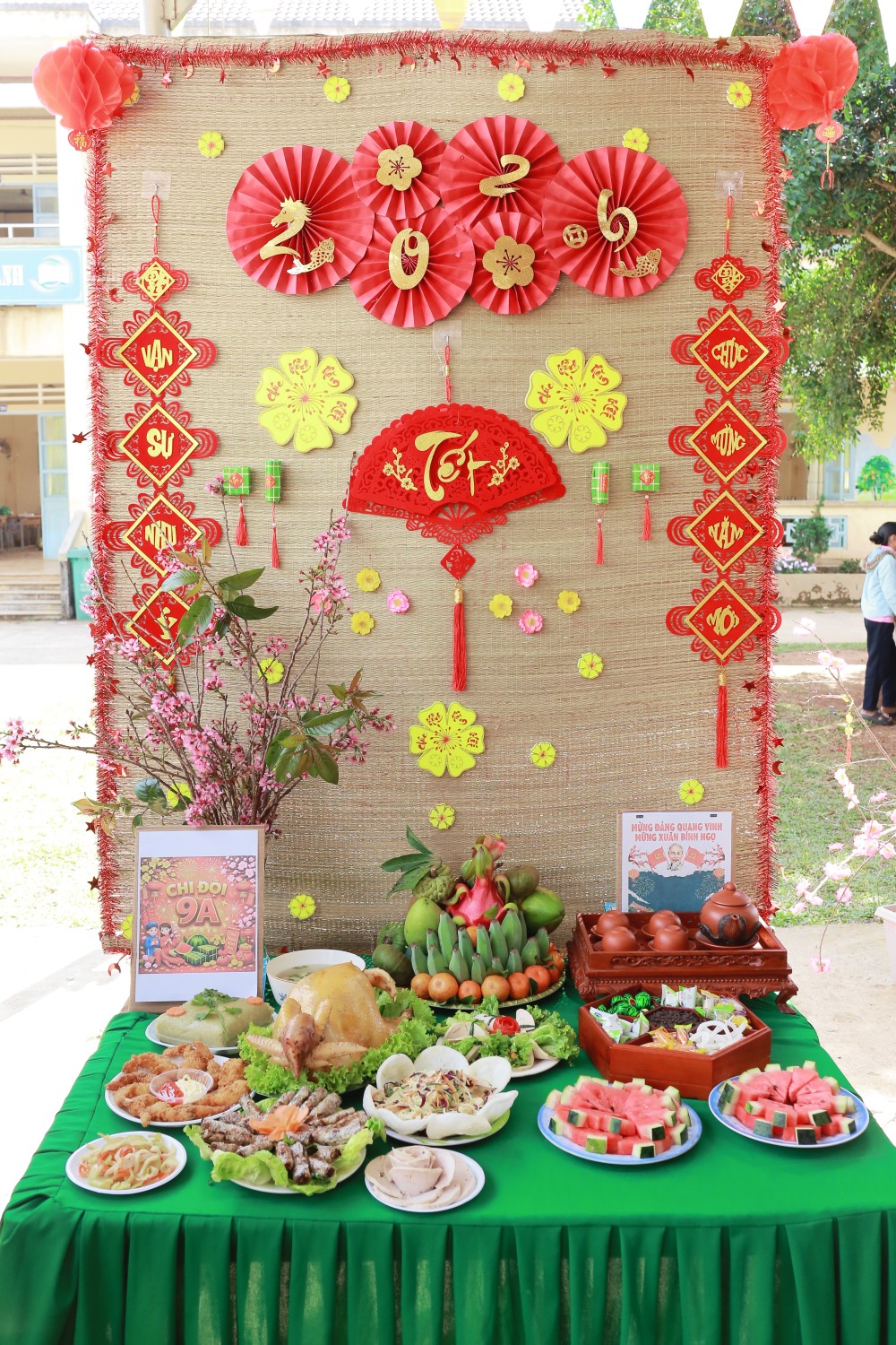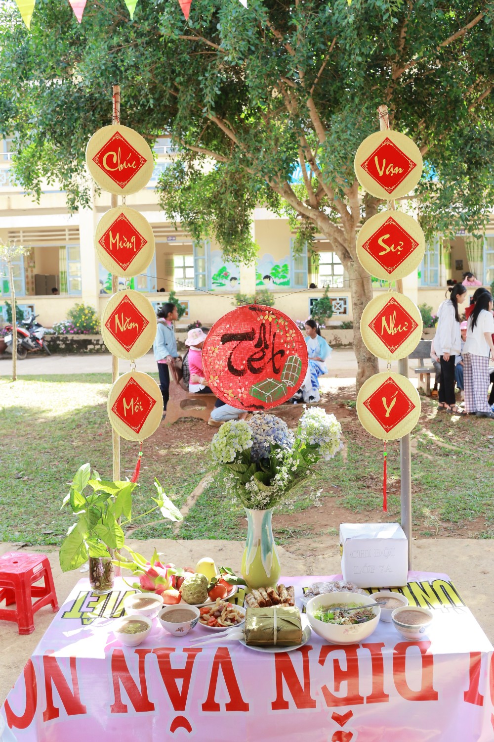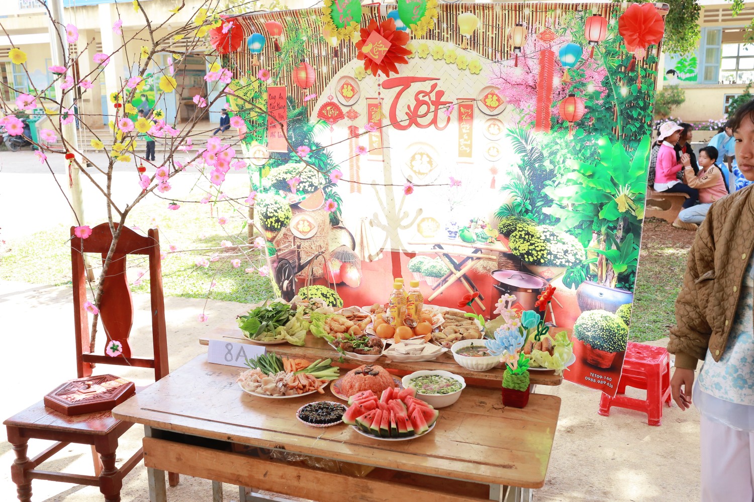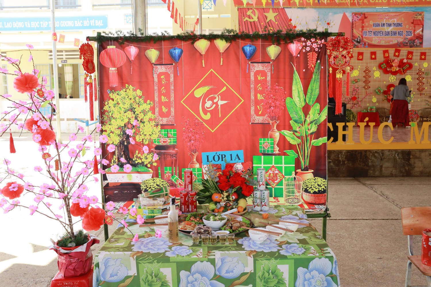 Trưng bày và trang trí mâm cỗ ngày Tết: Các em học sinh được trải nghiệm tự tay làm, trưng bày và trang trí, học hỏi về nét đẹp văn hóa ngày Tết cổ truyền của dân tộc.