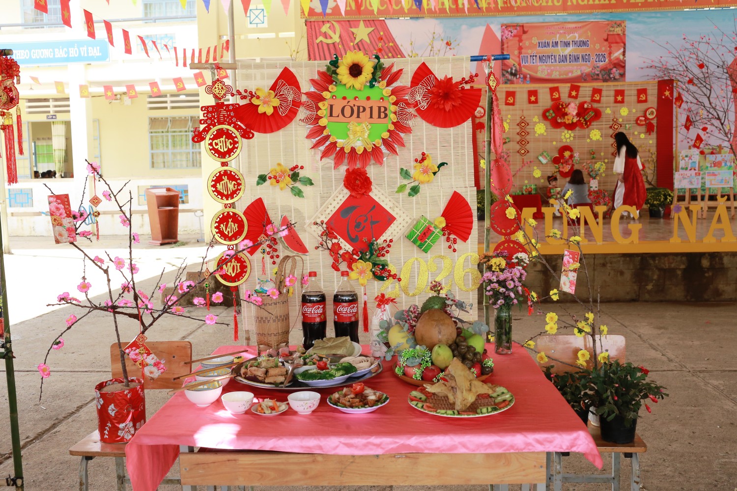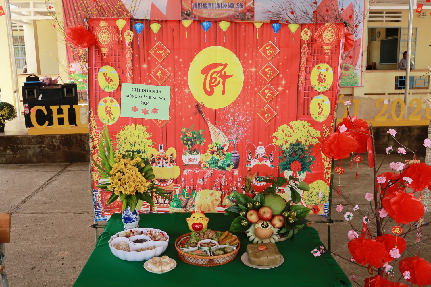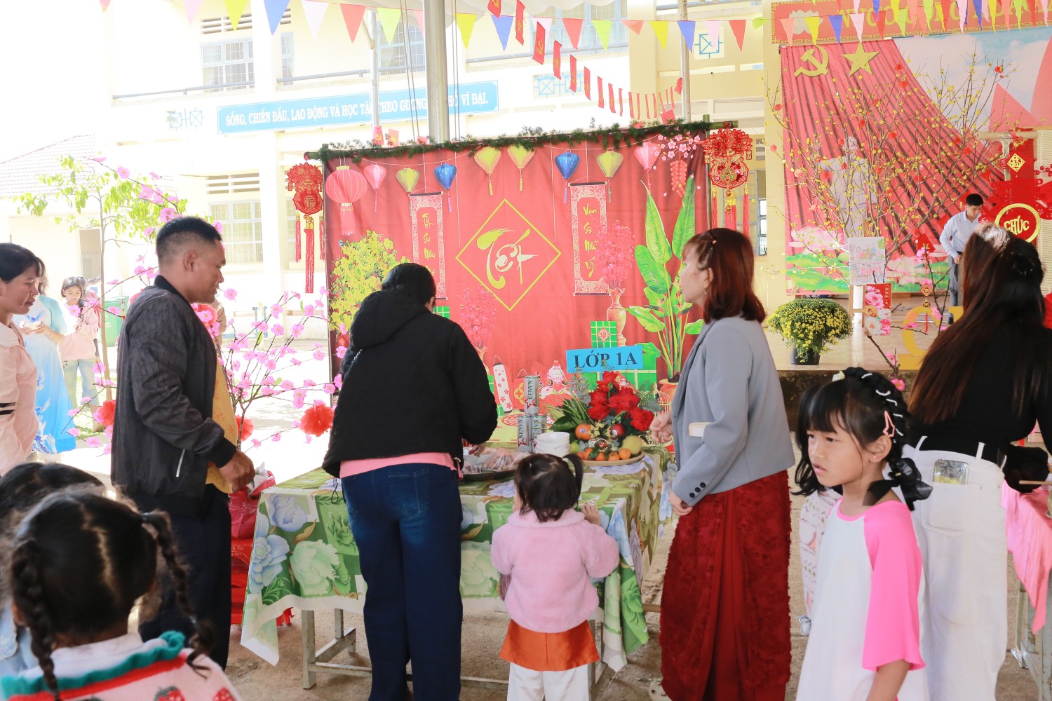 Chương trình diễn ra trong không gian ngập tràn sắc xuân với sự tham gia nhiệt tình của thầy cô, phụ huynh và toàn thể học sinh: