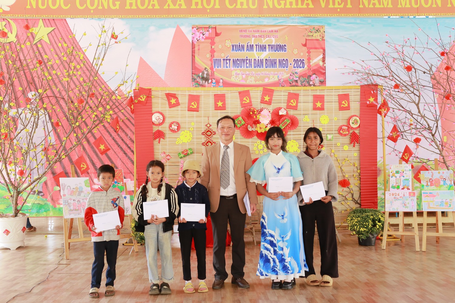 Sáng ngày 06/02/2026, trong không khí hân hoan của những ngày giáp Tết, trường TH&THCS Cill Cus đã tổ chức thành công chương trình "Xuân ấm tình thương - vui Tết Nguyên Đán Bính Ngọ 2026". Đây là hoạt động thường niên ý nghĩa nhằm mang đến một cái Tết trọn vẹn và ấm áp cho các em học sinh.